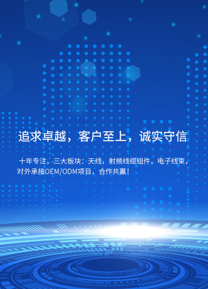 About us昆山英淋科電子有限公司成立于2013年,是一家致力于全球互聯(lián)產(chǎn)品的專業(yè)廠商,公司在上海和臺(tái)北設(shè)有研發(fā)中心,并建有先進(jìn)的微波暗室,昆山和南陽(河南)設(shè)有兩座制造工廠.公司下轄三大產(chǎn)品事業(yè)部:天線事業(yè)部,主要研發(fā)生產(chǎn)全系列各類天線,包含手機(jī)天線,無線路由器天線,NB天線,北斗天線,汽車天線,玻璃鋼天線,吸盤天線,F(xiàn)akra天線,5G天線,鐵氧體天線,RFID天線等,并研發(fā)定制各類天線。射頻事業(yè)部,主要研發(fā)生產(chǎn)射頻連接器,射頻線纜組件,射頻跳線,射頻測(cè)試線纜,通信基站、機(jī)柜射頻線纜等,包含0.81、1.13、1.37、RG174、RG178、RG179、RG316、RG58、RG141/142,以及半鋼半柔射頻線纜組件。電子線事業(yè)部,主要...